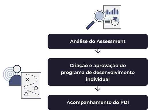A Gestão de PDI é uma etapa opcional, realizada após a conclusão do Assessment. Seu objetivo é criar, aprovar e acompanhar o plano de desenvolvimento dos profissionais avaliados, com foco na seleção das melhores práticas, métodos e fornecedores, assegurando que o programa seja efetivamente implementado e gere os resultados esperados.